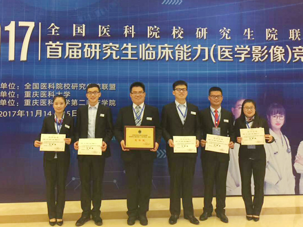11月14日-15日,全国医科院校研究生院联盟首届研究生临床能力(医学影像)竞赛在重庆医科大学举行。经过两天激烈角逐,我校由张强、王倩倩、沈善昌、王菲、冀海斌等五名同学组成的研究生代表队以复赛第9名的优秀成绩,荣获大赛三等奖。