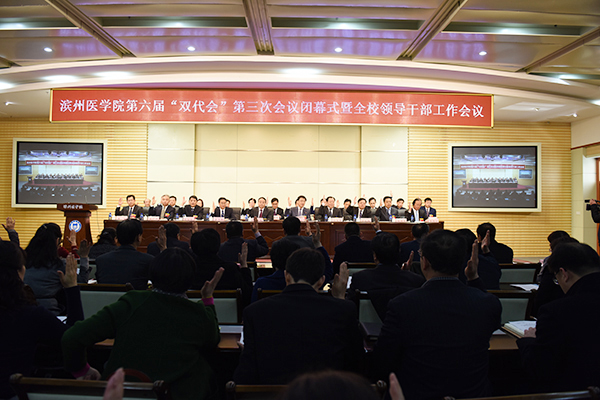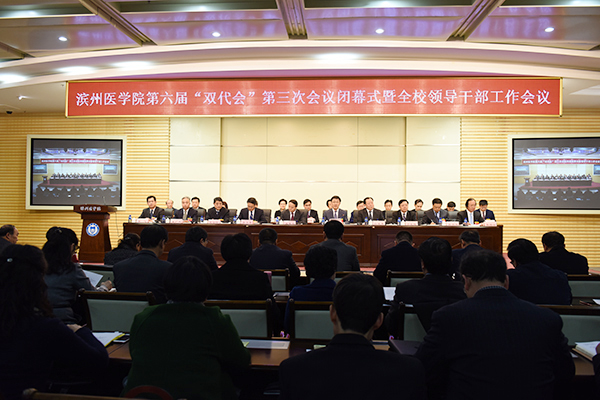 3月9日下午,根据会议日程,学校在烟台校区办公楼六楼报告厅举行六届三次“双代会”闭幕式,同时召开2018年寒假全校领导干部工作会议。