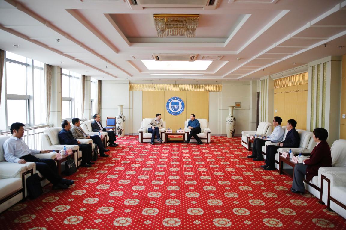 车先礼代表学校向王明柱一行的到来表示欢迎,简要介绍了学校及两所附属医院近年来的改革发展情况。王明柱简要介绍了滨州市技术学院的基本情况。双方表示,将进一步加强交流合作,实现共赢发展。