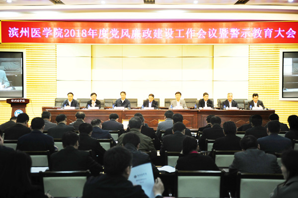 3月29日下午,学校在烟台、滨州两校区同步召开2018年度党风廉政建设工作会议暨警示教育大会。