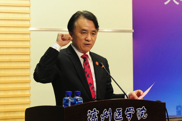 金志海在讲话中指出,本次大赛在滨州医学院举办,不仅是教育部对滨医的肯定和信任,也是对烟台的支持,将对烟台教育和医疗卫生健康事业的发展起到重要的推动作用。他希望,滨州医学院要以举办本次大赛为契机,加强同全国各高校专家和同行们的沟通交流和学习,继续深化医学教育改革,创新人才培养模式,努力开创高等医学教育新局面,不断攀登医学领域新高峰,为“健康烟台”建设、新旧动能转换贡献智慧和力量。他表示,烟台市政府将为本次赛事做好保障,服好务,并会一如既往地关心和支持学校的建设发展,努力为学校创造良好的环境和条件。