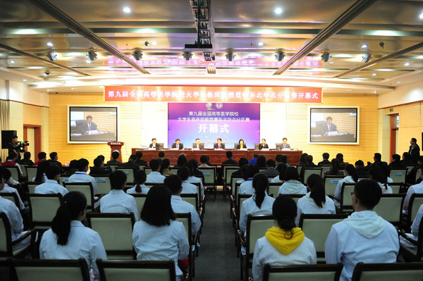 4月13日下午,第九届全国高等医学院校大学生临床技能竞赛东北华北分区赛在我校图书馆六楼报告厅开幕。