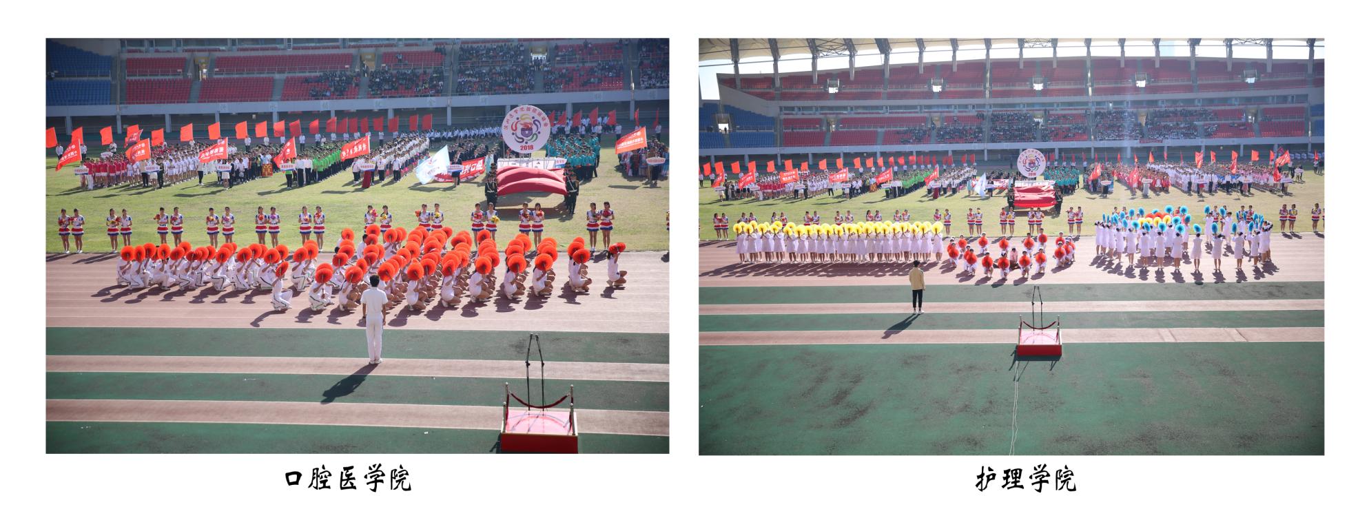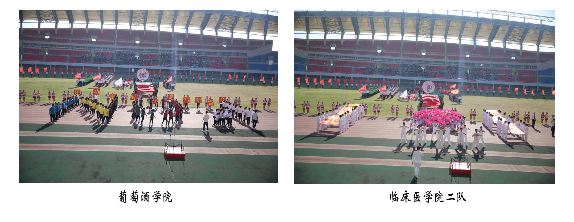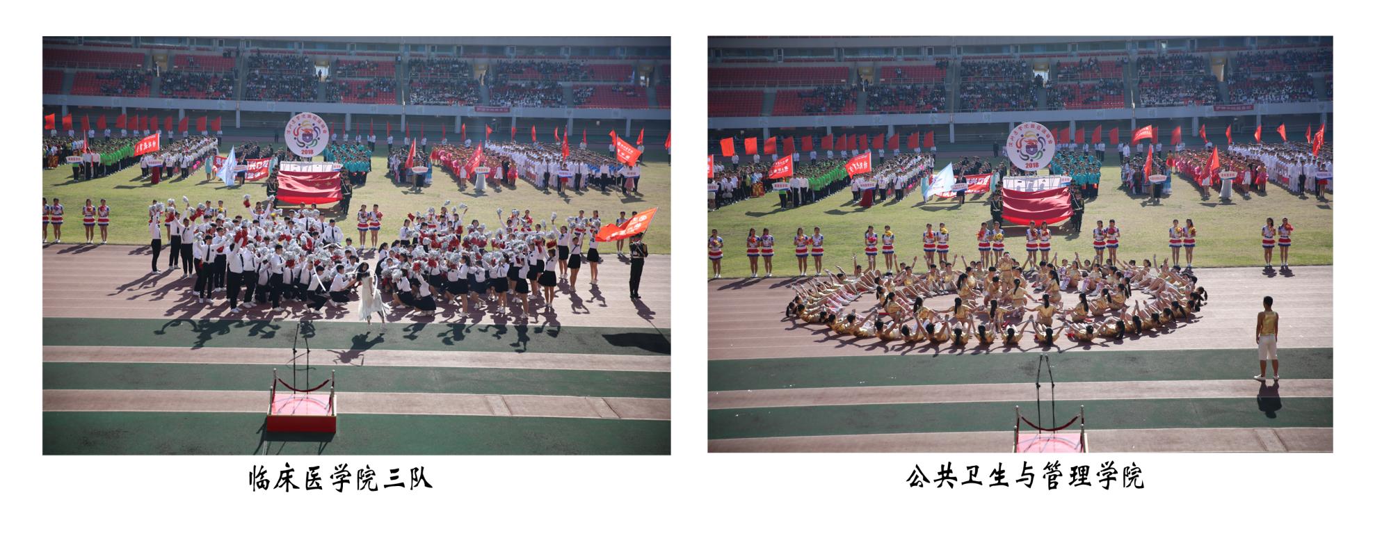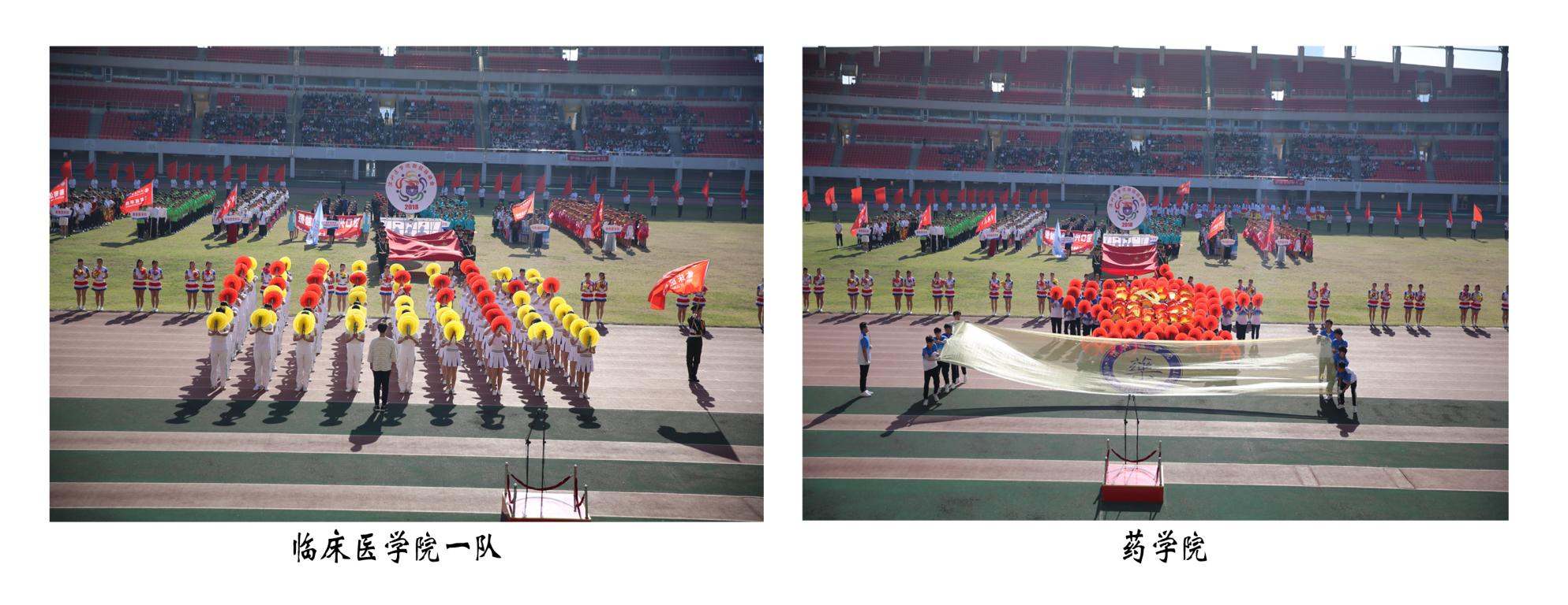 开幕式上,14支代表队方队以校训“仁心妙术”为精神内核,结合不同院系的不同学科特色,以构思巧妙的造型和内涵丰富的形式展现了各个院系的良好精神面貌和滨医学子青春激扬的精神状态。开幕式表演或整齐划一,或动感十足,精彩的表演不时赢得阵阵喝彩和热烈的掌声,为现场观众带来一场耳目一新的视觉盛宴。