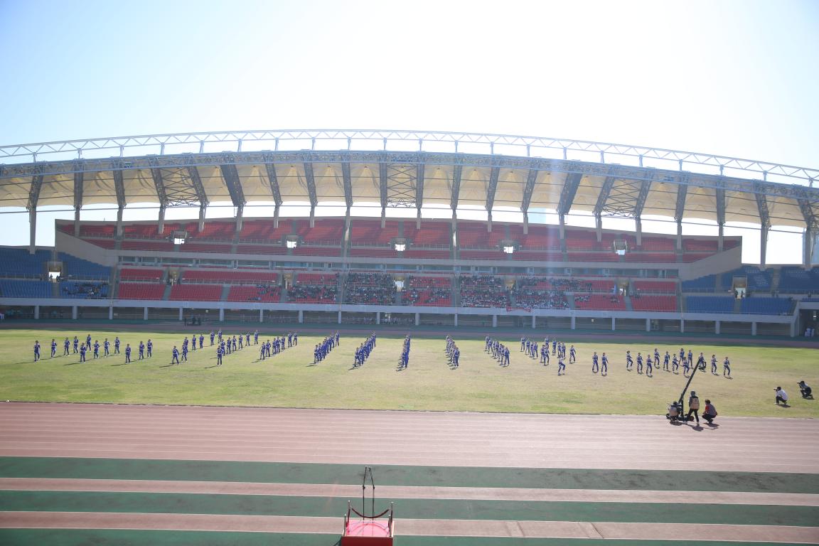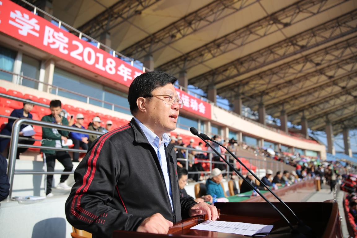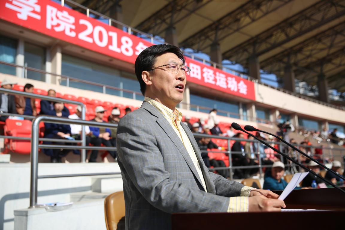 4月20日上午,学校2018年春季田径运动会在烟台市体育公园主体育场精彩开幕。校领导车先礼、王滨、李文喜、白咸勇、张宗伟、吕长俊、王广成、孙祥军、黄飞出席开幕式并在主席台就座。校党委书记车先礼宣布运动会开幕,院长王滨致开幕词,副院长吕长俊主持开幕式。