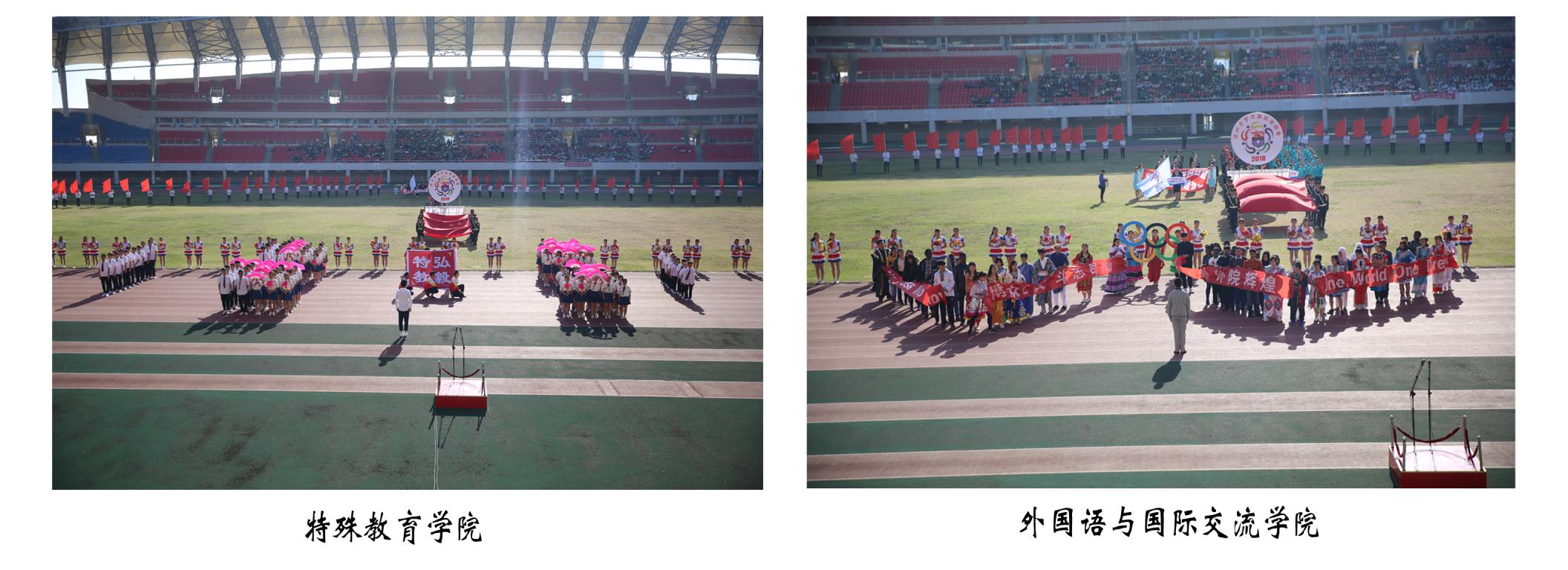 7点30分,烟台市体育公园主体育场内彩旗飘扬,人潮涌动。伴随着雄壮的乐曲,国旗方队、会徽方队、花束方队、彩旗方队、裁判员方队及14支代表队方队精神抖擞、昂首阔步进入运动场。在庄严的国歌中,全体人员起立,鲜艳的五星红旗在体育场冉冉升起。随着校党委书记车先礼宣布运动会开幕,全场欢呼声起,气氛热烈而隆重。