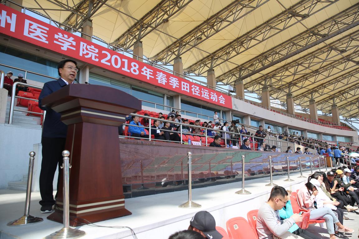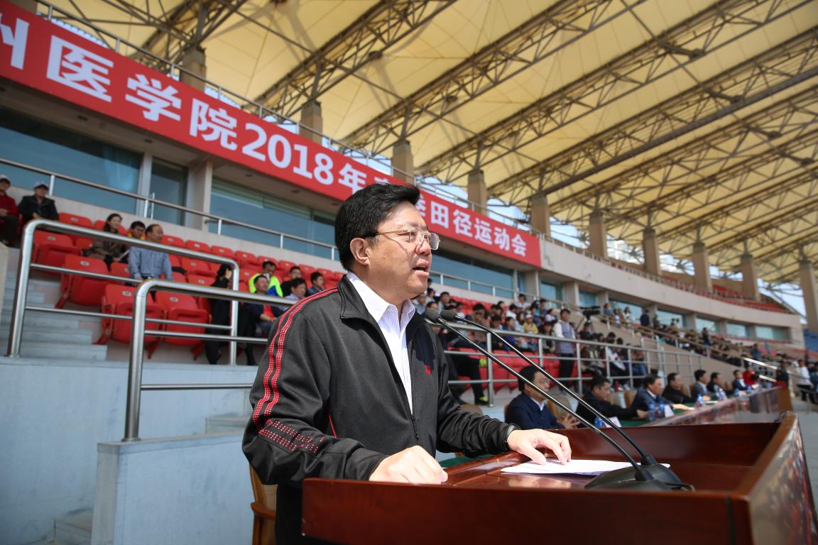 他希望大家,把赛场上表现出来的坚韧不拔的意志、顽强拼搏的作风和团结互助的精神继续发扬下去,使自己的身体更加健康,思想更加进步,工作更加出彩,以饱满的热情、崭新的姿态和务实的作风谱写我校改革与发展的新篇章,向着优势突出、特色鲜明高水平医科大学的目标奋勇前进!