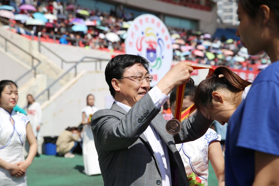 运动会期间,在校领导亲临比赛现场,指导工作、观看比赛,并分别为各个比赛项目中前三名获奖选手现场颁奖。