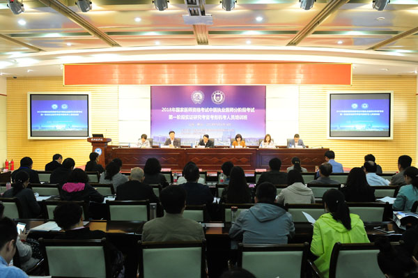 5月4日,2018年国家医师资格考试中医执业医师分阶段考试第一阶段实证研究考官、考务、机考人员培训班在我校开班。国家中医药管理局人事教育司副司长、中医师资格认证中心常务副主任王振宇、国家医学考试中心副主任何惧、山东省卫生和计划生育委员会中医药管理处副处长郑晓霞、国家中医药管理局医政司主任科员李素出席开班仪式,院长王滨致欢迎词,会议由国家中医药管理局中医师资格认证中心医考二处负责人黄宁宇主持。参加实证研究的30所院校考官、考务、机考技术人员和部分省中医局、考区考务人员300余人参加培训班以及开班仪式。