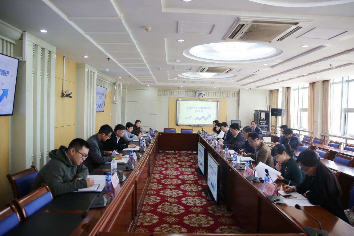 随后,调研组与学校相关职能部门负责人就预算管理、政府采购、预算项目绩效评价等方面内容进行了座谈交流,提出了指导性建议。在调研反馈中,调研组对我校预算管理工作取得的成效给予了充分肯定,一致认为:学校预算管理工作领导重视,预算编制科学、项目管理到位、各部门多方联动,具备了其他单位学习的典型经验和做法。特别是对我校拟定的设备购置、学科建设、基础设施建设等三个绩效目标考核模板充分认同,将作为省卫计委制定预算绩效指标评价体系的重要参考。最后,调研组到特殊教育学院和烟台附属医院进行了现场参观。