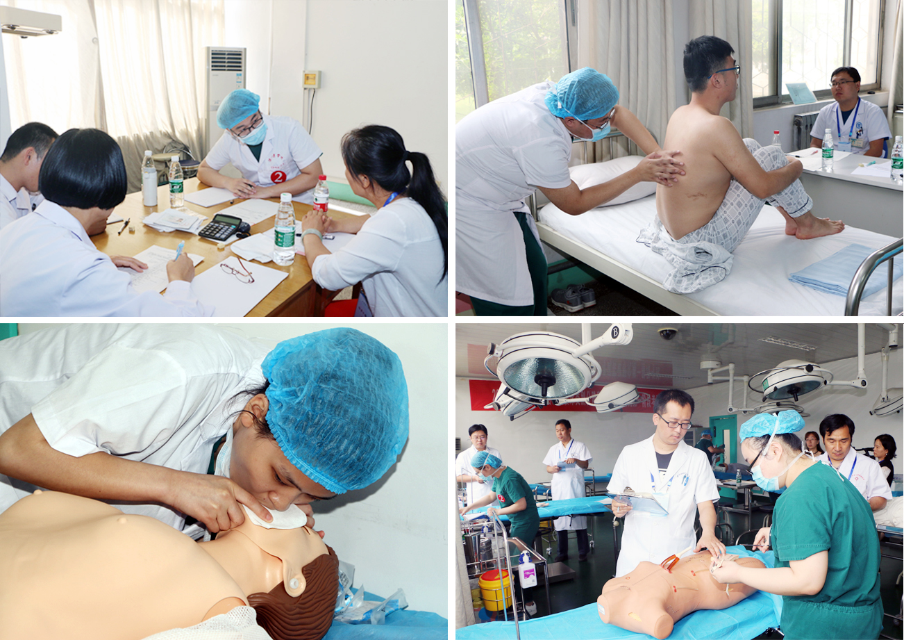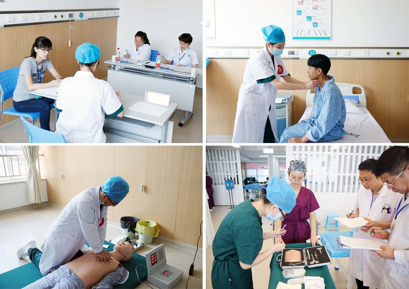 本次考试包括理论考试和技能考试两部分。6月1日为理论上机考试,主要考查学生的基本理论知识;6月2日至4日为临床基本技能考试,采取客观结构化临床考试模式,分病史采集、体格检查、急救基本操作、外科基本操作四个模块六站式考试,全面考核学生的临床基本技能和职业素质。