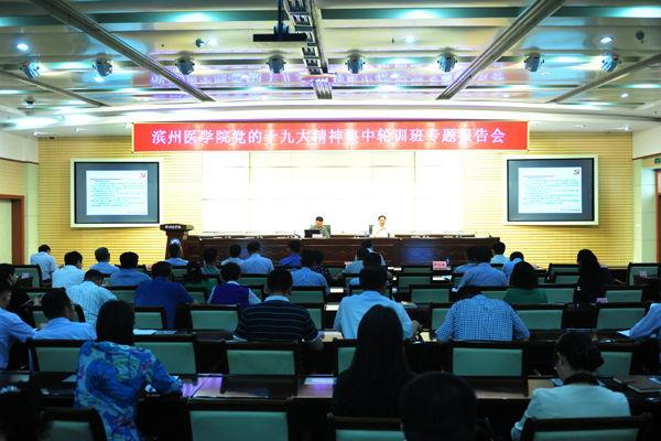 根据学校2018年党的十九大精神集中轮训班日程安排,6月12日,学校举行干部换届后党的十九大精神集中轮训班最后一场专家报告暨总结会,邀请省委党校林学启教授作党的十九大精神宣讲报告,党委副书记李文喜对轮训班进行总结。校领导车先礼、王滨、张宗伟、吕长俊、王广成出席会议。全校科级以上干部参加会议。
