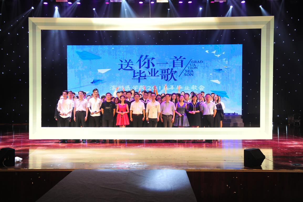 歌会在活力十足的开场舞中拉开帷幕,引爆全场激情。由毕业生创编的精彩节目逐一登场。歌会分三篇章:第一篇章《初见·匆匆那年》,歌舞表演轮番上演,用轻快的语调、悦动的旋律勾勒出初入大学时的相遇相逢,尽显年少时的青春懵懂;第二篇章《掠影·似水流年》,同学们以舞台为时间轴,讲述了大学岁月里的拼搏成长,用旋律与舞姿展现出滨医学子化茧成蝶的蜕变;第三篇章《展望·未来可期》传达了滨医师生对未来的希冀,庞玉成和石磊两位老师深情献唱,向毕业学子送上师长的温馨祝福,原创歌曲《再见滨医》将全场气氛引向高潮。