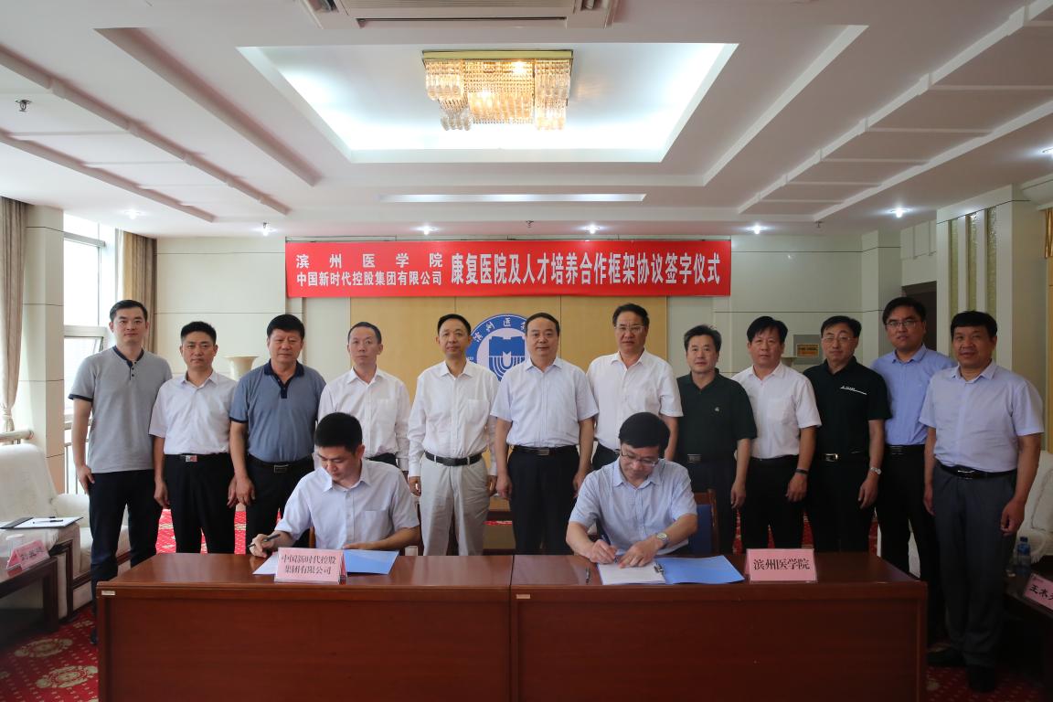 在出席领导嘉宾的共同见证下,双方有关负责同志签署《滨州医学院、中国新时代控股集团有限公司康复医院及人才培养合作框架协议》。根据协议,双方将在康复医院建设和康复人才培养合作等方面,进一步加强合作、资源整合、优势互补,共同为“健康中国”战略和山东省新旧动能转换重大工程做出积极贡献。