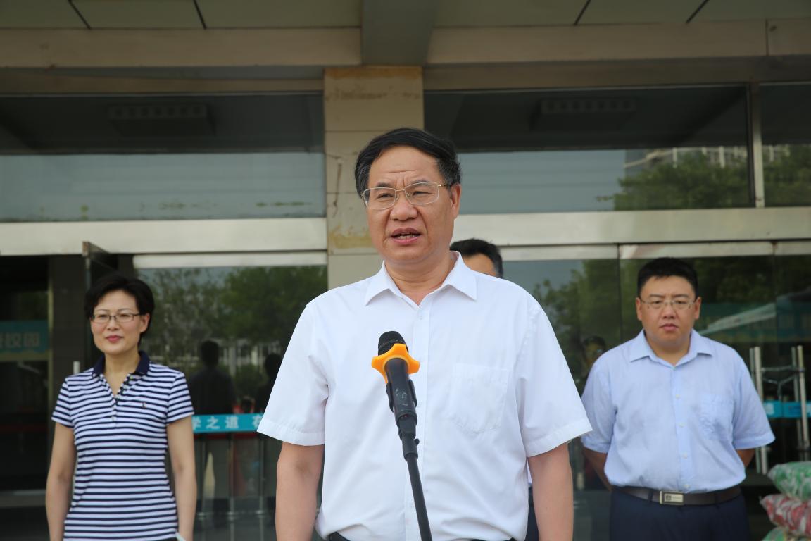 为发挥医学院校专业特色与优势,服务地方医疗发展,助力打赢脱贫攻坚战,7月15日上午,党委统战部协同公共卫生管理学院组织开展烟台市贫困居民查体暨完善健康档案暑期行动出征仪式,党委副书记李文喜出席仪式并致辞,烟台市疾病预防中心党委委员王桂强,统战部、学生工作处、团委、公共卫生与管理学院相关负责人与60多名师生志愿者参加出征仪式。