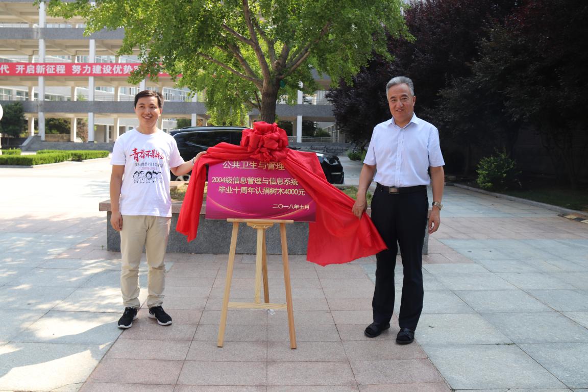 7月14日,我校2004级信息管理与信息系统专业校友在毕业十年后重返母校,共话师生情谊,认捐校园树木。副院长王广成出席认捐仪式。学院领导、任课老师、全体辅导员和校友参加仪式并座谈。