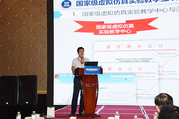 黄飞在报告中简要介绍了学校办学状况,重点针对虚拟仿真实验教学发展概览、国家级虚拟仿真实验教学立项情况分析、学校虚拟仿真实验教学介绍等做了详细阐释,并从国家层面顶层设计、省级层面指导标准和学校层面以本为本夯实教学中心地位三个方面对虚拟仿真实验教学平台建设提出了科学合理建议,主题报告高屋建瓴,内容丰富,得到了与会人员的一致认可和好评。