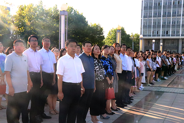 秋高气爽,天高云淡。8月27日清晨,学校在青年广场隆重举行新学期升国旗仪式。副院长孙祥军,学生工作处、研究生处、团委、各院(系)学生工作负责人、团总支(团委)书记、学生辅导员与全体在校生一起参加了升旗仪式。