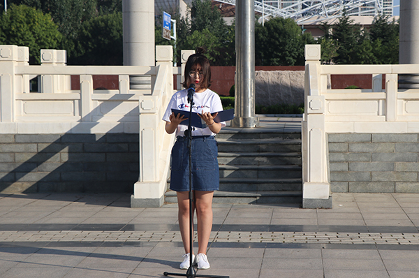 公共卫生与管理学院2016级学生翟文惠代表全校学生在国旗下作《铭记青年使命,为实现伟大中国梦贡献青春力量》的主题演讲,表达了滨医学子为决胜全面建成小康社会,夺取新时代中国特色社会主义伟大胜利贡献青春力量的赤子之心和拳拳热忱。