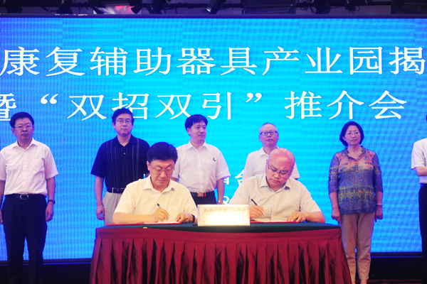 8月31日,烟台康复辅助器具产业园揭牌暨双招双引推介会在东方海天酒店召开。民政部社会福利和慈善事业促进司副司长徐建中,中国康复辅具协会会长闫和平,烟台市副市长张代令,高新区工委书记、管委主任于东出席会议并为烟台康复辅助器具产业园揭牌。中国残疾人辅助器具中心主任李晞、中国康复辅助器具协会秘书长毛勇、我校院长王滨、山东省民政厅社会福利和慈善事业促进处处长尹绍强、山东省假肢矫形康复中心主任丁秀生与各位与会嘉宾共同见证产业园区揭牌。