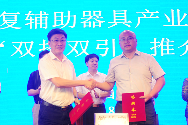 揭牌后,在与会领导嘉宾的共同见证下,我校王滨院长与山东省假肢矫形康复中心主任丁秀生正式签署“滨州医学院与山东省假肢矫形康复中心共建共享共管康复辅助器具实训中心”的战略合作协议,双方在科学研究、人才培养、临床服务、造福社会方面进行深度合作。