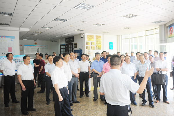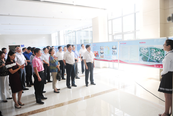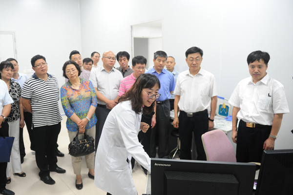 在教学服务中心一楼大厅,考察团听取了我校近年来改革发展的基本情况,并深入医药研究中心,参观重点实验室,听取实验室建设、科研、人才团队等情况介绍,并就有关问题与工作人员进行了互动交流,对我校近年来在推进优势突出、特色鲜明高水平医科大学建设进程中所取得的成绩表示赞赏。