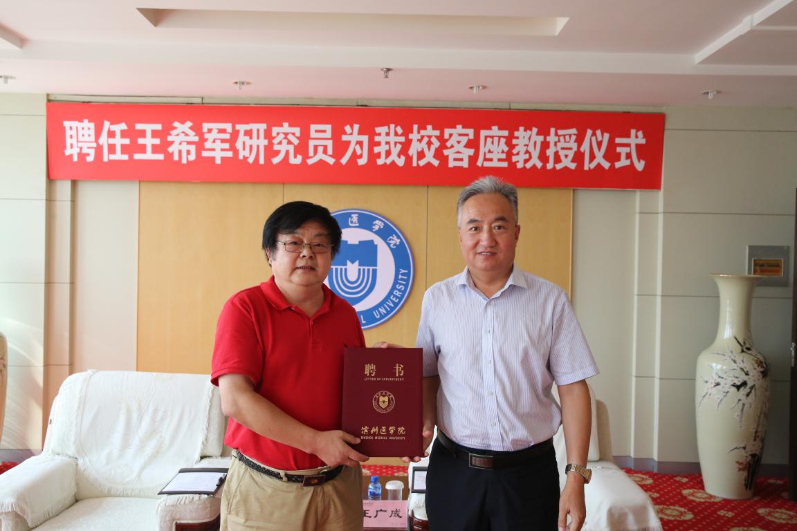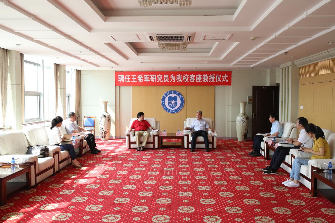聘任仪式前,王广成向王希军简单介绍了学校的办学历史、现状与发展目标,重点与王希军就马克思主义学院建设进行了交流。王希军表示将尽自己所能为滨医发展和马克思主义学院的建设贡献自己的力量。
