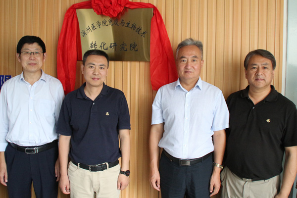9月19日我校免疫与生物技术转化研究院揭牌仪式在烟台隽秀生物公司举行。副校长王广成教授与隽秀生物董事长兼总经理高秀岩共同为转化研究院揭牌。基础医学院有关负责同志,我校特聘教授姜国胜教授等参加揭牌仪式。