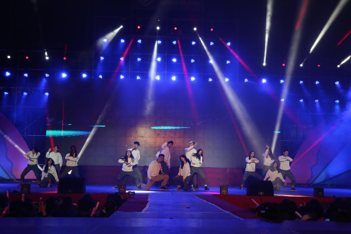 第三篇章“情渐牵·共话婵娟”中,《水调歌头》歌声与舞姿交相辉映,淋漓尽致的地展现了对远方亲人朋友的思念与祝福;《老爸》悠扬婉转的曲调,触动了现场观众的心弦,父母连线视频中家人的叮咛与嘱托让2018新同学不禁潸然泪下;国旗护卫队风采秀《旌旗烈烈》步履铿锵,英姿飒爽,彰显了国护队的责任、忠诚与担当。晚会在师生同唱的歌曲《祖国万岁》中圆满落下帷幕。