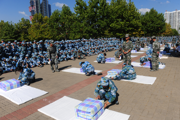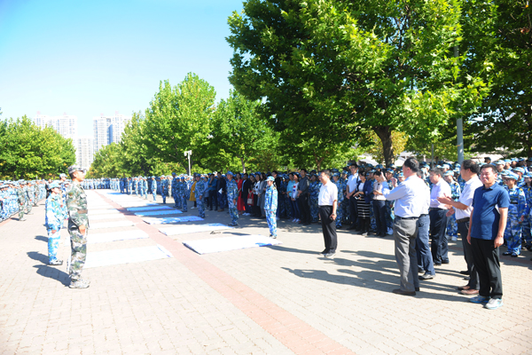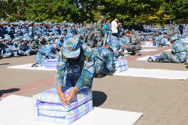 9月27日上午,2018级新生军训“叠军被大赛”在烟台市体育公园举行。副院长孙祥军以及相关部门、单位、学院负责人、各学院辅导员、军训教官与2018级全体新生共同观看了比赛。