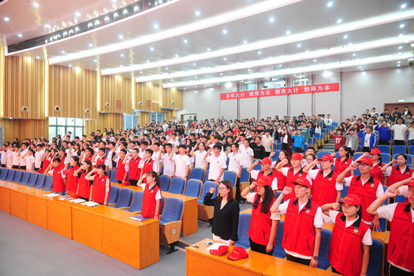 成立大会上,与会嘉宾领导共同为义工管理中心10支义工服务队授旗。临床医学院2017级麻醉二班杜晓楠同学代表慈善义工发言。2017级影像三班刘宇威带领全体义工进行了宣誓。