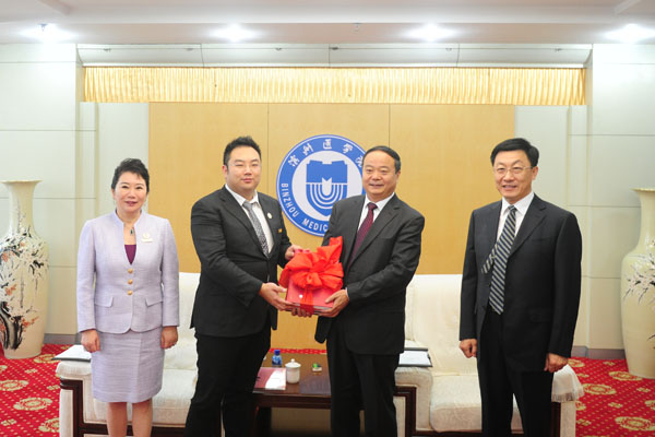车先礼首先代表学校对徐鹏一行的到来表示欢迎,对美宝集团捐赠钱款支持医学教育发展的大爱情怀和可敬义举表示感谢,并简要介绍了学校近年来改革发展的基本情况。他指出,美宝集团的创始人徐荣祥先生和李俐女士都是滨州医学院的优秀校友,血脉相融,薪火传承。此次学校与美宝集团签署战略合作协议,是对双方血浓于水情谊的美好见证。他表示,学校上下将共同维护好这份深情厚谊,让仁心妙术在代代滨医学子不断传承,以优秀校友徐荣祥先生为榜样,勤奋刻苦,敢于创新,为人类健康卫生事业的发展添砖加瓦。徐鹏代表美宝集团对学校的热情接待表示感谢,他深情回顾了父亲徐荣祥先生与滨州医学院的血脉情缘,并简要介绍了美宝集团近年来的发展概况,他表示,美宝集团将以此次签署战略合作协议为契机,合作发展、资源共享、互惠共赢,与滨州医学院共同为推动再生医学教育、科研和产业化合作发展,服务“健康中国”“健康山东”战略做出更大贡献。