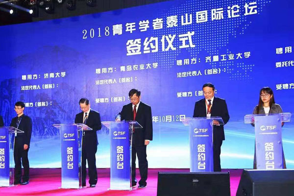 10月12日上午,2018年青年学者泰山国际论坛在济南市南郊宾馆举行。省委教育工委常务副书记、教育厅厅长邓云锋、省委组织部人才工作处处长郑书忠、省人力资源和社会保障厅人才开发处处长褚国良出席主论坛。全省36所高校负责同志及来自美国、澳大利亚、新加坡、韩国等国家和地区、国内著名高校的近400名青年学者参加论坛。