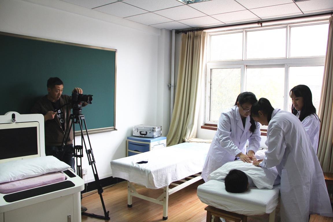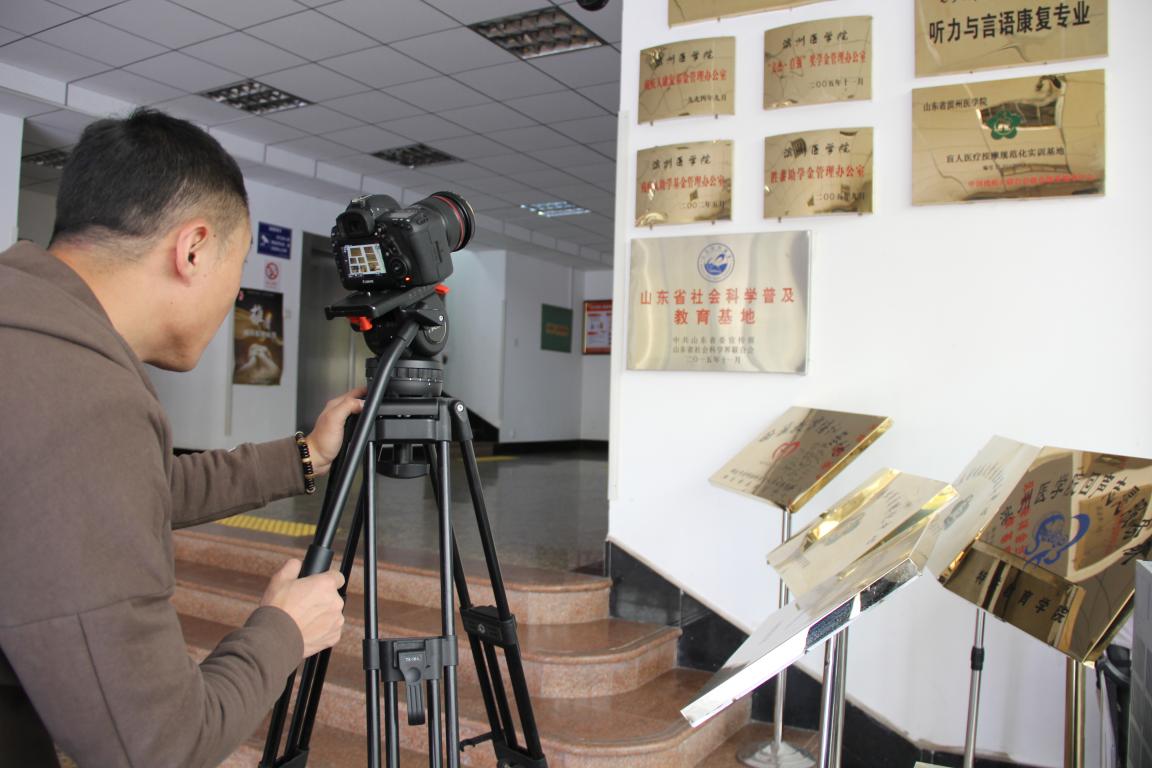 会见前,闫绍纲一行对我校滨州校区进行了拍摄采访,特别对学校康复临床和教育先行者毛宾尧教授上个世纪70年代末开展的工作进行了挖掘。来烟台校区后,拍摄组对医学二系(残疾人医学系)创始人之一任春波、视障学生代表刘频频等进行了深度采访,并深入残疾人大学生群体、学习生活场所、盲文图书馆、康复实验室等进行了拍摄。