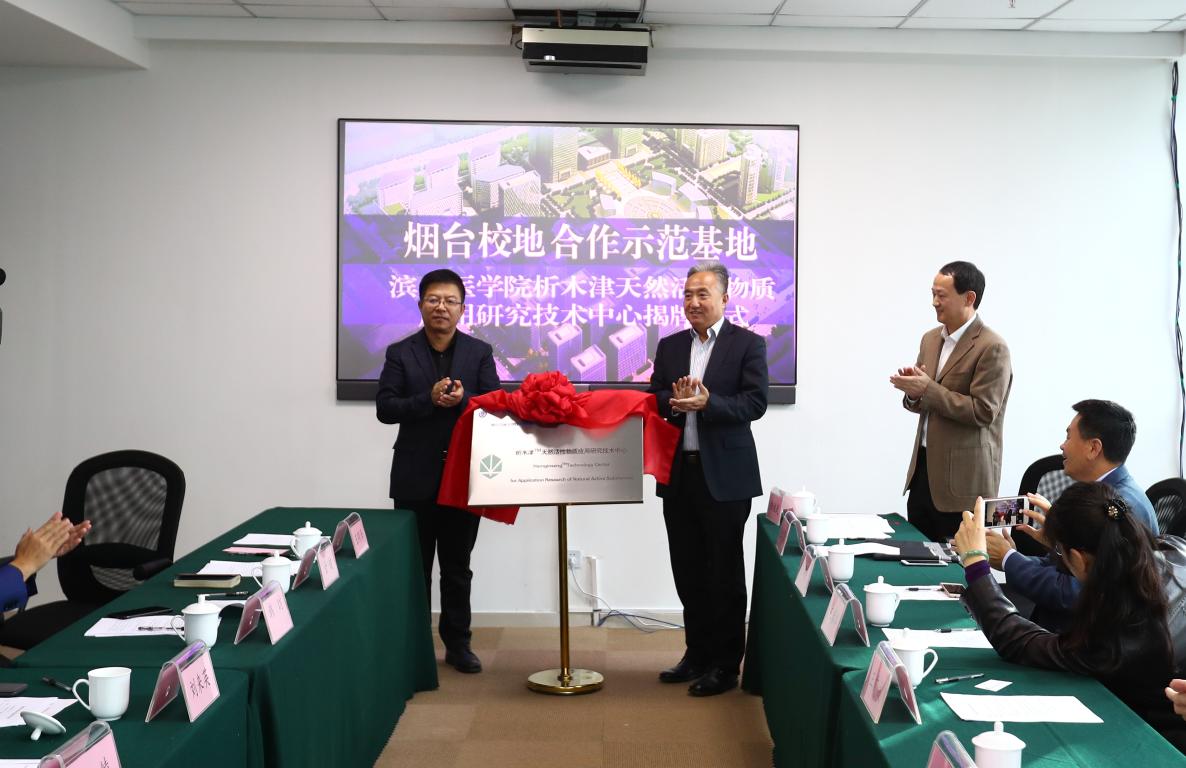 烟台校地合作示范基地位于高新区,是烟台市委、市政府集聚创新资源、提升自主创新能力、推动新旧动能转换的重要载体平台。截至目前,基地已落户项目17个,储备意向项目11个。析木津天然活性物质应用研究技术中心是烟台校地合作示范基地落户项目之一,由我校与烟台汉麻生物技术有限公司共同建设。中心将集合高校技术力量与企业资金、原材料、生产能力等资源,围绕大健康产业共同进行抗衰老产品的研发和产业化,以汉麻生物的技术需求为导向,同时面向社会开展技术服务,开展天然活性物质在医药、化妆品、食品与保健食品、生物医药材料等领域的应用型研究和转化。