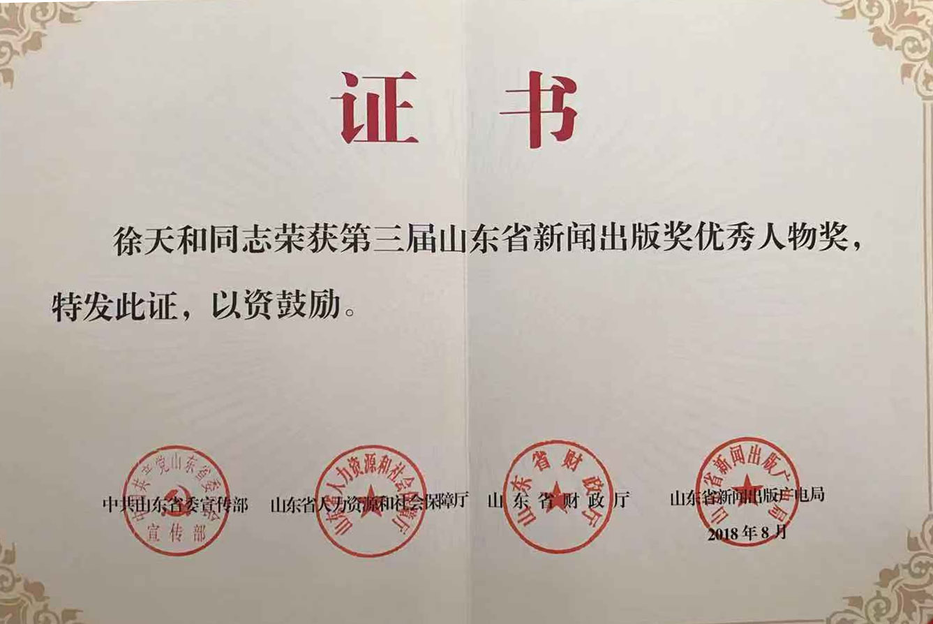 近日,山东省新闻出版广电局公布第三届山东省新闻出版奖获奖名单。我校徐天和教授荣获新闻出版优秀人物奖,这是我校教职工第一次获此殊荣。