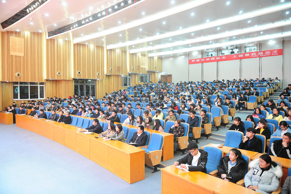 11月8日晚,荣祥楼学术报告厅座无虚席,党委书记车先礼为2017级部分专业学生上题为“中国梦、滨医梦”的形势与政策课,课程仪式由党委宣传部部长、马克思主义学院党总支书记张玉龙主持,相关学院党总支书记以及部分思政课教师代表聆听课程。