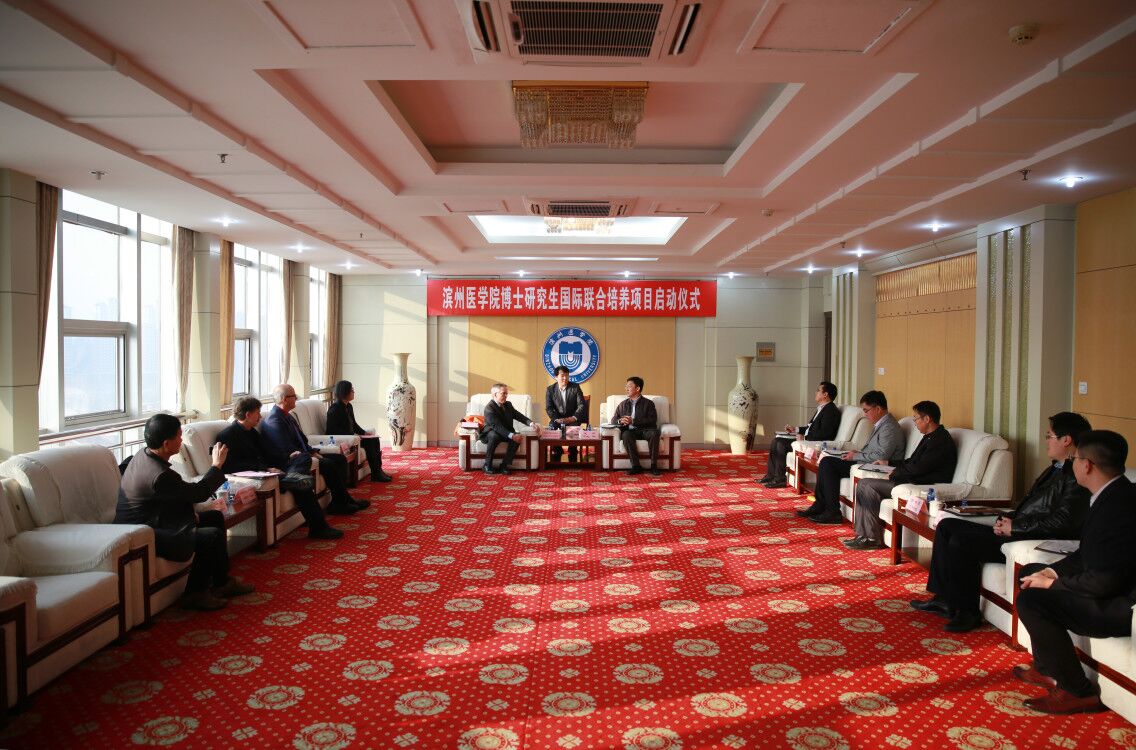 11月23日上午,我校博士研究生国际联合培养项目启动仪式在图书办公楼十楼接待室举行。院长王滨,副院长黄飞,瑞典皇家科学院院士、瑞典乌普萨拉大学约翰•贝里奎斯特(Jonas Bergquist)教授,加拿大多伦多大学生理学系终身教授、医学科学系国家发展主任冯中平,加拿大多伦多大学神经外科詹姆斯•尤班克斯(James Eubanks)教授,加拿大多伦多大学药学系杰弗里•汉德森(Jeffrey Henderson)副教授和加拿大多伦多大学副教授(终身职位)、博士生导师孙宏硕出席启动仪式。校办公室、人事处、科研处、研究生处相关负责人参加启动仪式。