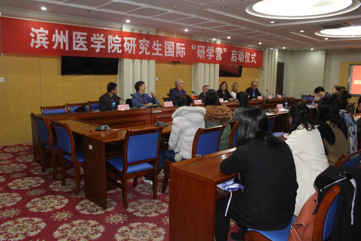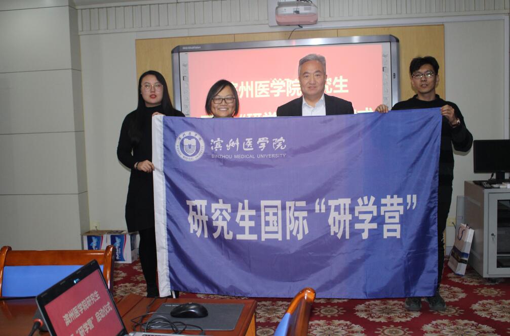 王广成首先向参加启动仪式的各位嘉宾表示了热烈的欢迎,并简要介绍了滨州医学院的发展情况。各位专家分别介绍了自己的研究领域和研究方向。随后,各位专家与研究生展开了热烈的座谈,学生们就研学期间课程选择、导师沟通、实验设计等问题向各位专家进行了详细的咨询。最后,王广成与冯中平共同为我校研究生国际“研学营”授旗。