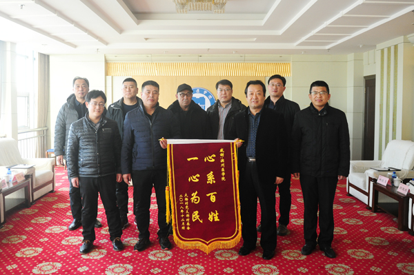 12月14日下午,滨州市无棣县芦郭社区党总支书记梁明周、大杨社区党总支书记蒋荣泉、邢王社区党总支书记吴景超带领东屯村、大杨村、刘家邢王村党支部书记来我校走访交流并赠送锦旗,向学校党委对“第一书记”工作给予的大力支持表示感谢。党委组织部部长周连顺在办公楼十楼接待室会见梁明周一行。学校“第一书记”派出单位后勤管理处、基建处等主要负责同志以及我校“第一书记”参加会见。