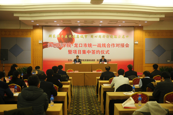 12月25日,我校与龙口市统一战线合作对接会暨项目签约仪式在南山国际会议中心隆重举行。校党委副书记李文喜出席仪式并致辞,龙口市市委常委、统战部部长高景波主持仪式,我校宣传部、统战部、烟台附属医院、基础医学院、特殊教育学院、药学院(葡萄酒学院)主要负责人以及学校统一战线代表与龙口市残联、龙口市人民医院、南山集团有关负责人参加仪式。