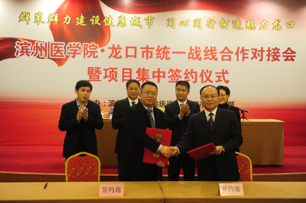 会上,我校烟台附属医院、特殊教育学院、药学院(葡萄酒学院)与龙口市人民医院、龙口市残联和南山集团分别签署合作协议,根据这些协议,我校与龙口市将在药学院(葡萄酒学院)实践教学、残疾人康复、康复人才培养、残疾大学生创业、医疗诊疗资源等方面全面开展合作,建立更加全面、更加紧密的合作关系,深入务实开展校地合作,努力实现校地双赢、共同发展。这是我校与龙口市开展校地合作的一个重要成果,也标志着双方合作进入崭新的历史篇章。