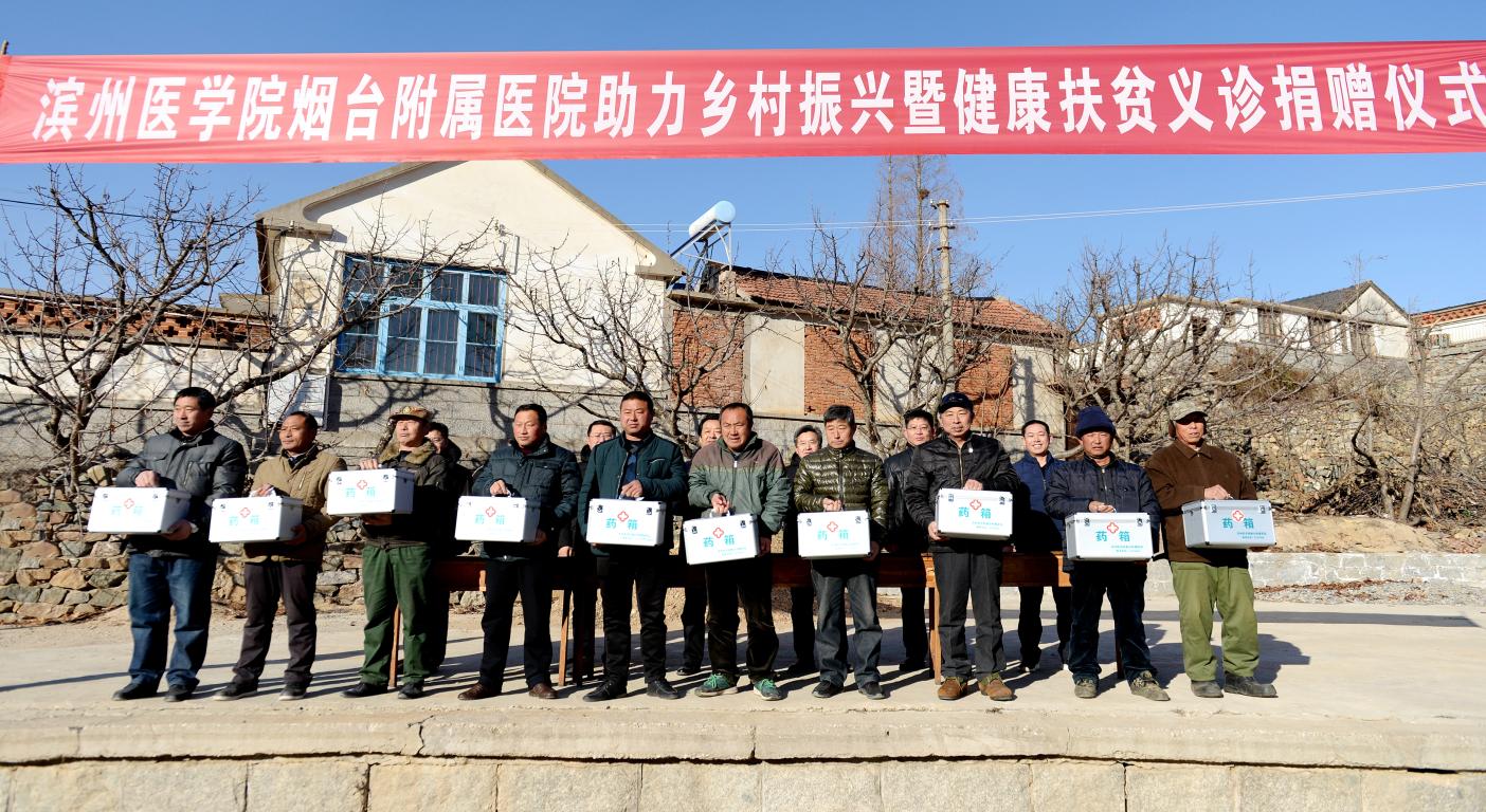 栖霞市亭口镇位置偏远,各村医疗资源缺乏,医疗设施陈旧,医用药品短缺,为解决村民常见疾病治疗问题,学校和烟台附属医院向五个帮扶村捐赠部分药箱、电子血压计和急需药品等,总价值共计七千余元。