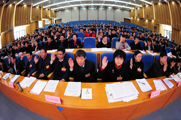 代表们举手表决
