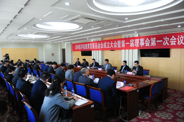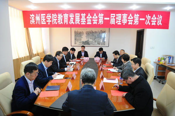 成立仪式结束后,学校教育发展基金委员会召开第一届理事会第一次会议,第一届理事会拟任理事、监事参加会议,党委书记车先礼主持会议。会议选举党委书记车先礼同志为第一届理事会理事长,副院长孙祥军同志为副理事长,财务处处长杨玉涛同志为秘书长。会议表决通过了拟任基金会监事的决定、《滨州医学院教育发展基金会章程》《滨州医学院教育发展基金会接受捐赠管理办法》等7项基金会管理制度、基金会开户银行以及基金会内设机构和人员聘用决定。
