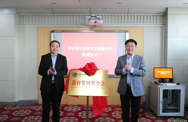 成立仪式上,党委书记车先礼、院长王滨共同为滨州医学院教育发展基金会揭牌。