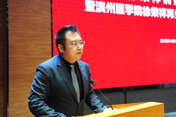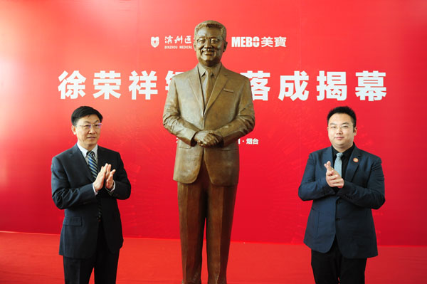 美宝集团董事局主席徐鹏动情地说,滨州医学院是美宝集团创始人徐荣祥和李俐大夫的母校,承载着仁心妙术的滨医校训,在滨医宽容仁爱的土壤上,徐大夫进行着烧伤湿性医疗技术的初始研究并在以后的临床实践中发展成为了系统的再生医疗技术和人体再生复原科学。他指出,树高千尺不忘根,水流万里总思源。美宝在发展壮大的过程中始终没有忘记最初为何出发,今天滨医徐荣祥铜像落成暨徐荣祥再生医学研究中心揭牌不仅是美宝与滨医双方合作进程中的重要历史性进展,也是滨医学子与母校之间浓厚情谊的深刻表达,更是滨医对徐荣祥大夫人格与成就的高度认可,是“滨医文化”与“荣祥精神”的相逢与相融。他希望,今天的纪念活动不仅能让滨医的学子们记住徐荣祥大夫,更能够让众多学子们能在将来带着仁心妙术的滨医校训,带着徐荣祥的科学精神,走向充满光明的未来,争做仁者情怀、博学多能、敢于创新的滨医人,用心系天下的大爱为人类生命造福。他表示,美宝集团将与滨州医学院共赢发展,共同为再生医学教育、人才培养、科技创新、成果转化、推广应用做出努力,护佑人类健康,同续百年未来。