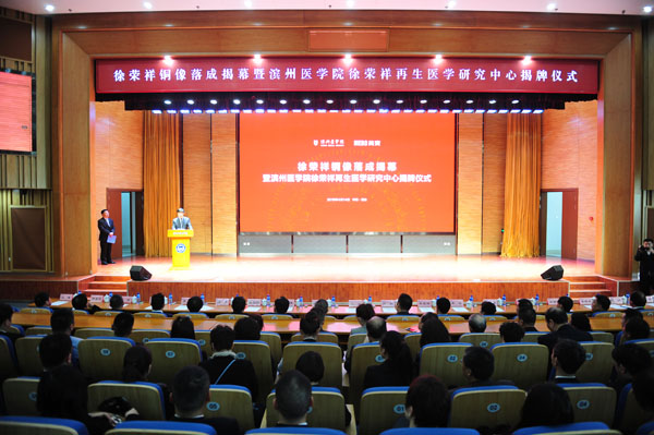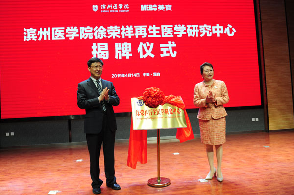 徐荣祥教授铜像揭幕仪式结束后,学校在荣祥楼学术报告厅举行徐荣祥再生医学研究中心揭牌仪式。院长王滨与美宝集团董事局副主席李俐共同为徐荣祥再生医学研究中心揭牌,纪委书记张宗伟宣读《关于成立滨州医学院徐荣祥再生医学研究中心的通知》。