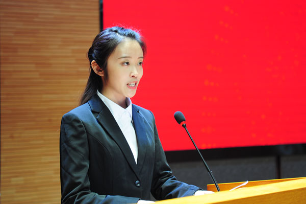 我校美宝国际班学生代表王瑶在发言中代表全班同学表态,要以徐荣祥教授为榜样,勤奋学习,勇于大胆创新,拓展国际视野,涵养仁心医德,以优异成绩回报母校和美宝集团的培育之恩。