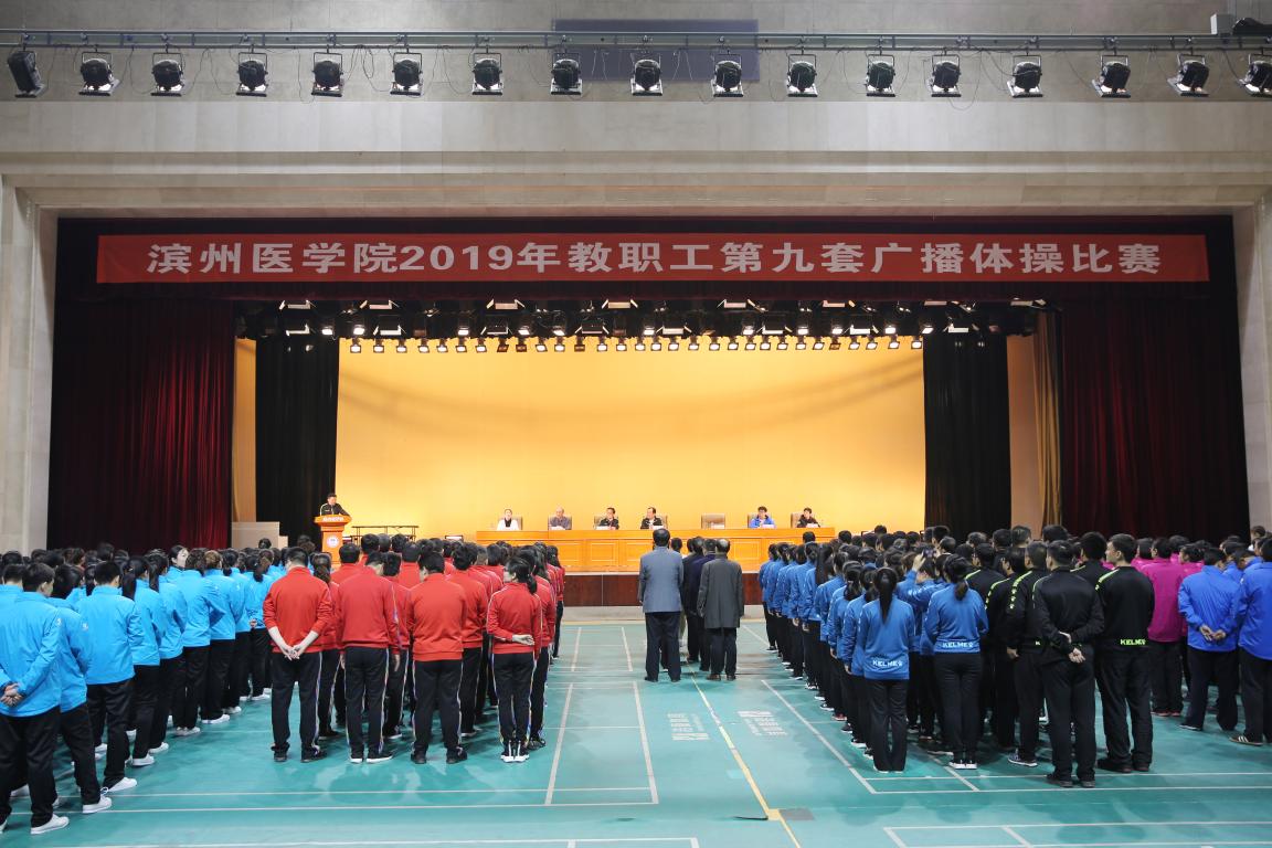 4月12日,学校在大学生活动中心二楼举行教职工第九套广播体操汇演比赛。副院长白咸勇宣布比赛开始,副院长吕长俊为比赛致辞。全校各部门、学院工会各分会、烟台附院工会组成的八支代表队,共计320余名教职工参加了汇演比赛。