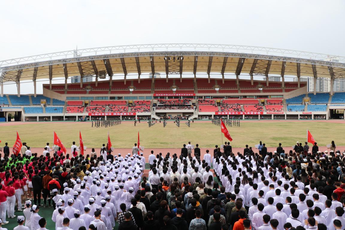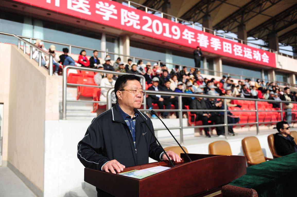 王滨在开幕辞中指出,开展校园体育运动、增强师生员工体魄,是落实立德树人根本任务的重要内容。多年来,我校始终把提升学生健康素养和体质健康水平摆在重要位置,不断深化体育教学改革,不断完善体育基础设施,广泛开展群众性体育活动,学校体育工作取得了新的成绩。他强调,本次运动会的举办,既是对广大师生医护员工运动水平的一次检验,更是对大家竞争意识、团队精神和顽强意志的考验,对推动学校各项事业发展、激发办学活力,有着十分重要的意义。他希望全体运动员顽强拼搏、奋勇争先,赛出风格,赛出水平;希望全体裁判员秉持“公开、公平、公正”的体育原则,严守规程,公正裁决;希望全体工作人员树立安全第一的意识,忠于职守,热情服务;希望全体观众模范遵守赛场纪律,积极为运动员呐喊助威,共同维护赛场秩序、展现滨医风采,切实把本届运动会办成一届纪律严明、成绩优异、文明和谐、加油鼓劲的体育盛会。